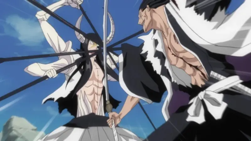 Kenpachi vs Nnoitra outside Las Noches