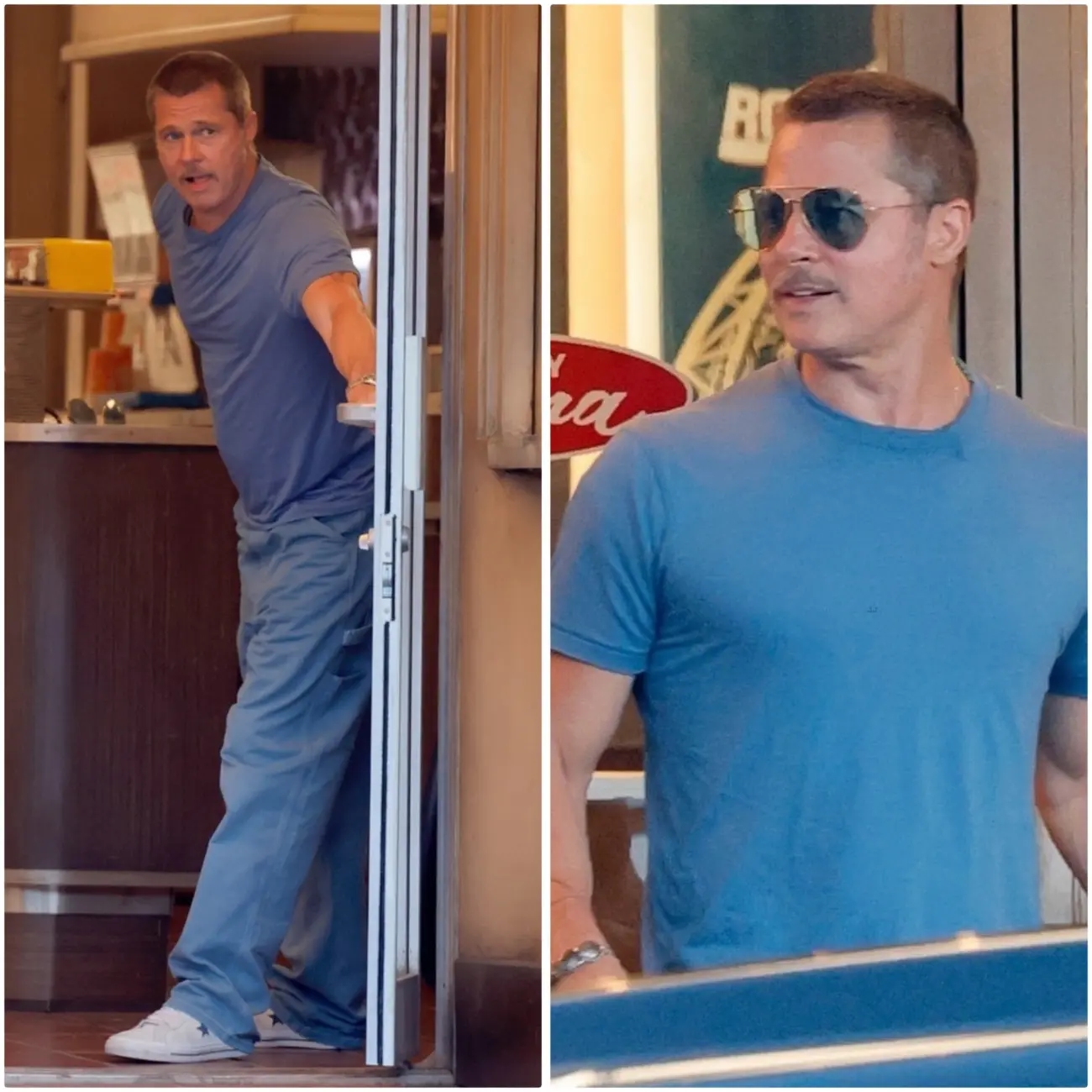 New behind-the-scenes photos of Pitt have started popping up online. He’s seen on set, once again playing the chill and cool Cliff Booth.
