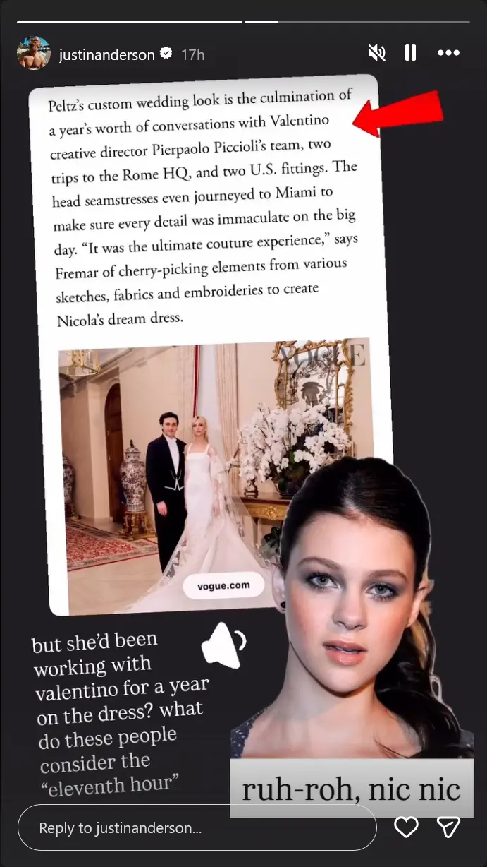 Anderson went further on Instagram Stories, describing Nicola as having “spooky energy” and saying she was “not nice.” He even claimed that the warning signs were clear long before the wedding. “I can say with my full chest. Not good energy … Based on how many wedding planners she went through, I think she’s the issue,” he wrote. “Not a good person … So, like I perked up right when I saw they were getting married. I’m like, ‘Oh my gosh, this isn’t going to be good for that family.’”