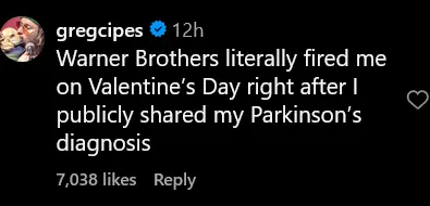 Cipes then replied to the post himself, saying, “Warner Bros. literally fired me on Valentine’s Day right after I publicly shared my Parkinson’s diagnosis. It’s like a death to me that only the fans can bring back to life.”