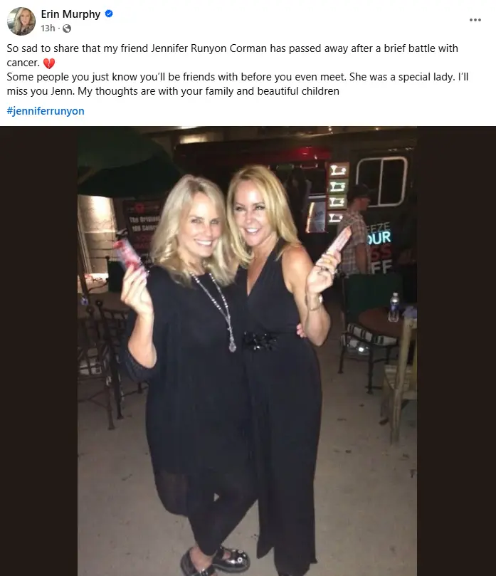 Erin Murphy, who starred on Bewitched, also paid tribute, writing, “So sad to share that my friend Jennifer Runyon Corman has passed away after a brief battle with cancer. Some people you just know you’ll be friends with before you even meet.”
