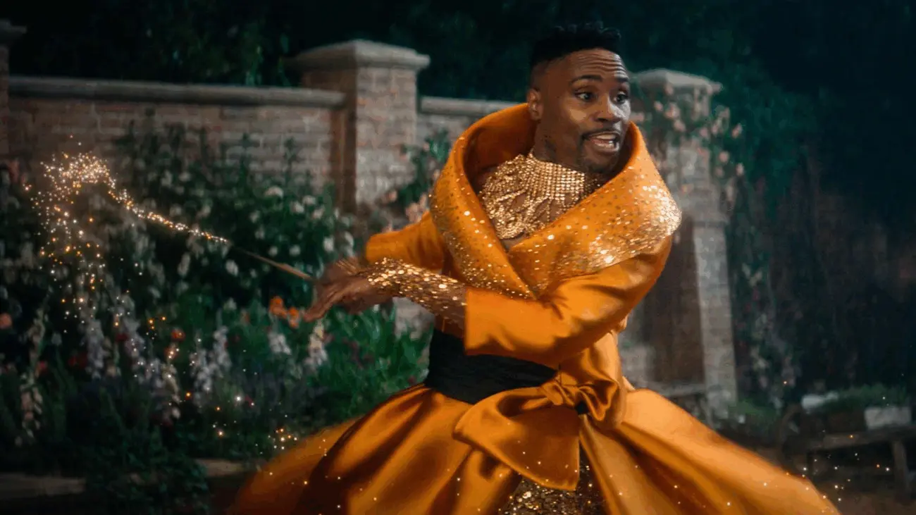 Billy Porter appears as ‘Fab G’, a gender-neutral fairy godparent role replacing the traditional fairy godmother. The character provides the transformation that enables Cinderella’s entrance into court society, using magic that aligns with the film’s contemporary pop-musical style.
