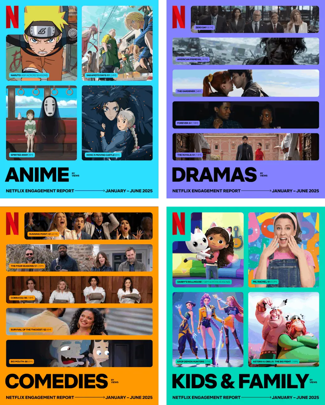 That number alone is impressive, but the rest of the chart is just as interesting. Studio Ghibli’s work landed in second place, while Detective Conan, also known as Case Closed! in the U.S., came in third with 38 million views. This is a big surprise, as the long-running mystery series has not traditionally been a major hit in the West. Pokémon came close behind, and One Piece completed the top five with 28 million views.