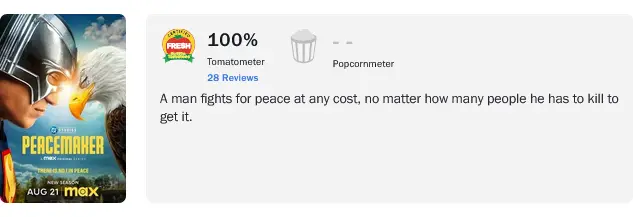 The second season of Peacemaker is set to premiere on HBO Max on August 21, 2025. Critics have responded enthusiastically, giving the show a perfect 100% fresh rating on Rotten Tomatoes based on 28 reviews.