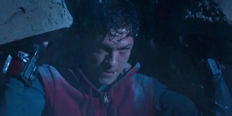 After Vulture drops a building on Peter, he’s buried under heavy debris. Alone and injured, he cries out for help, his voice breaking.