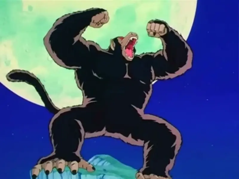 The anime lays out that a full moon plus a Saiyan tail triggers the Great Ape transformation, and that removing the tail stops it. Goku’s first change under the moon and the story of Grandpa Gohan’s death both reinforce the trigger and the danger. Grabbing or squeezing the tail is shown as a weakness that can immobilize Goku, which gives opponents a clear counter.