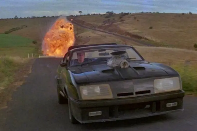 The car used in ‘Mad Max’ was a heavily modified Ford Falcon XB GT with a showpiece blower setup for the camera. The scoop and belt are featured prominently during closeups, and the film frames the switch as a key beat in chases. The emphasis creates a clear visual cue for acceleration even though the mechanism is not presented the way an actual road car would handle it.