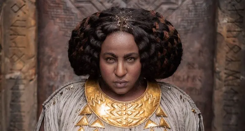 Galadriel is portrayed as a sword-wielding warrior in Season 1, leading battles and chasing Sauron. In Tolkien’s works, she’s a wise, mystical figure, not a frontline fighter, making this depiction feel off.