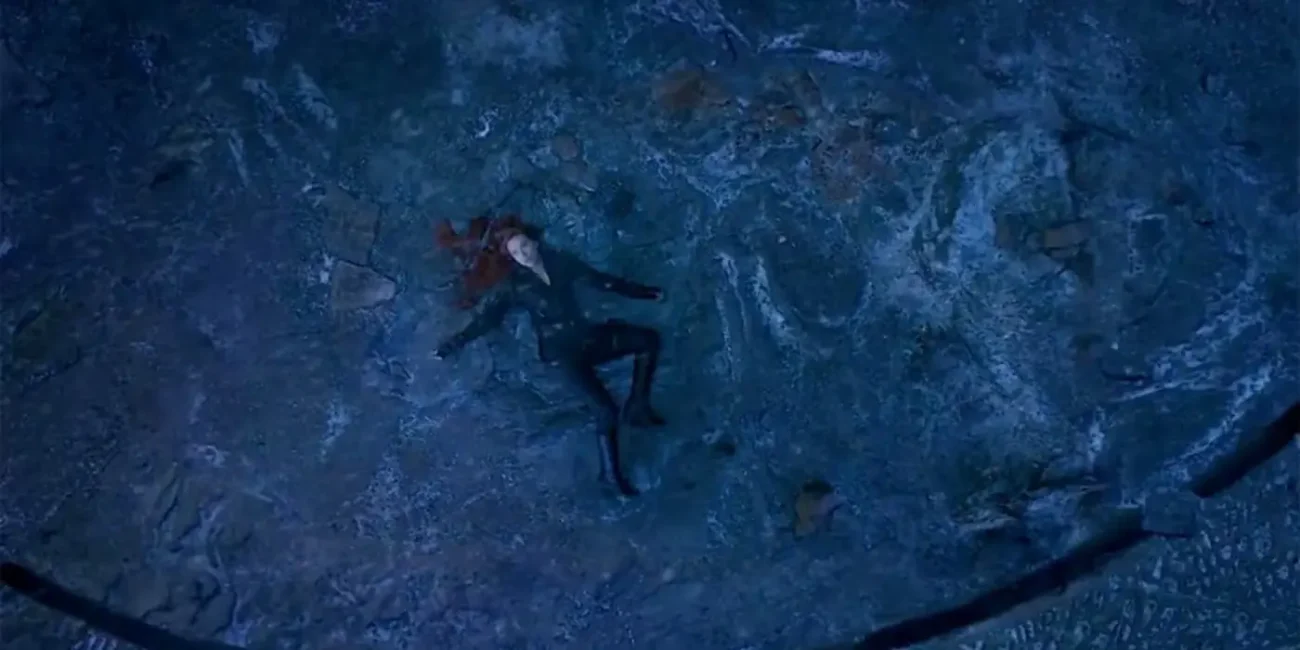 So that her friends may achieve victory, Black Widow jumps from the cliff and onto the rocks below, thereby sacrificing herself for the greater good. With Black Widow dead, Hawkeye is given the Soul Stone and makes his way back to the present.