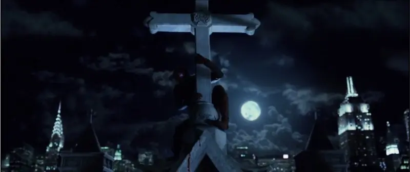The action relies on digital doubles and stylized wire-assisted moves that were common at the time. Rooftop leaps and midair spins often switch to computer generated shots for full body maneuvers, with quick edits disguising transitions between stunt work and effects.