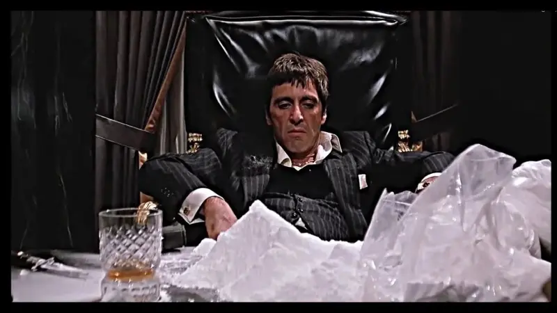 Cocaine use is shown as a driver of impulsive decisions, insomnia, and rifts with allies, and the story links those behaviors closely to violent outcomes. The plot uses visible signs like residue on a desk and sudden mood shifts to mark escalation, which compresses a complex medical and social issue into a quick shorthand.
