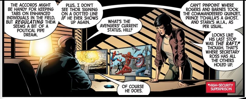 On an undisclosed location, Nick Fury and Maria Hill witnessed the Civil War between two teams led by Captain America and Iron Man. Fury and Hill decide to stay off the grid, and while leaving the place, they discuss the Sokovia Accords and what will happen if a new threat arises now that the Avengers are broken. They even discussed Captain Marvel, but Nick Fury said there was still no need to call her.